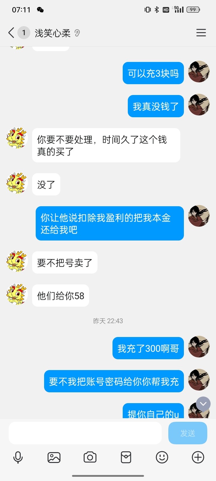 打着充一百送一百的称号想方设法骗你充钱提款永远卡你后面告诉我卖账号无敌
