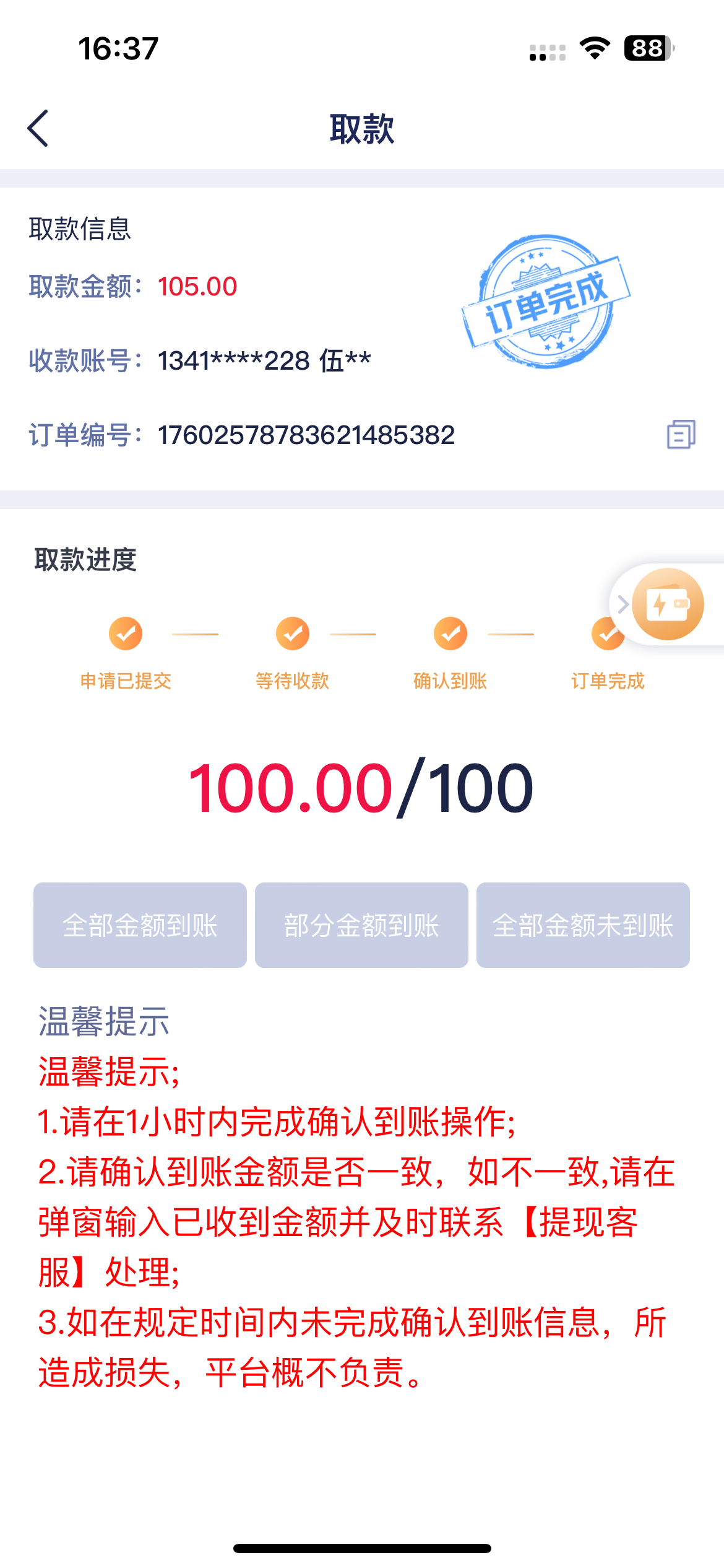 出款情况:到