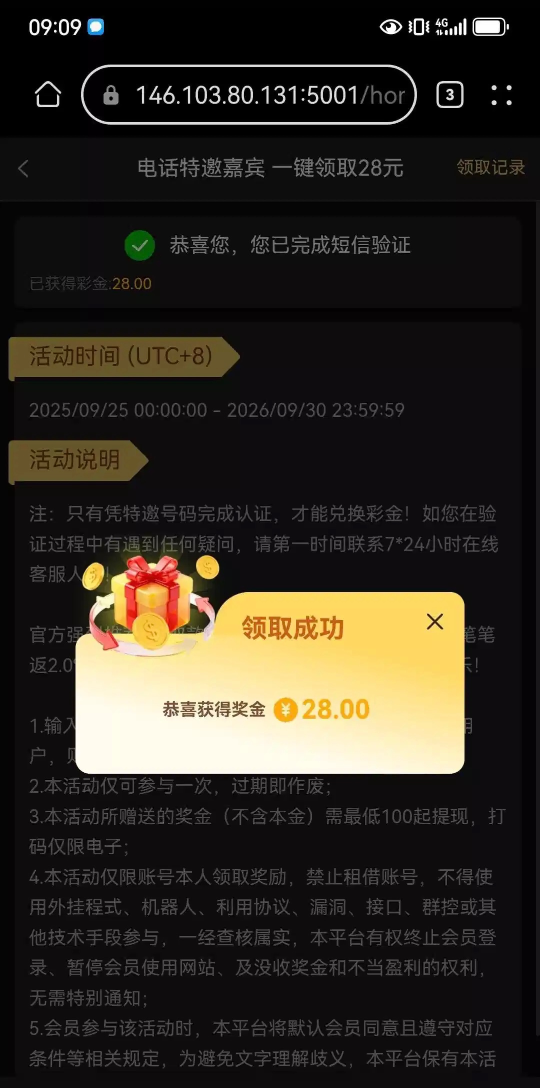 若提示活动开始后绑定手机才能领取