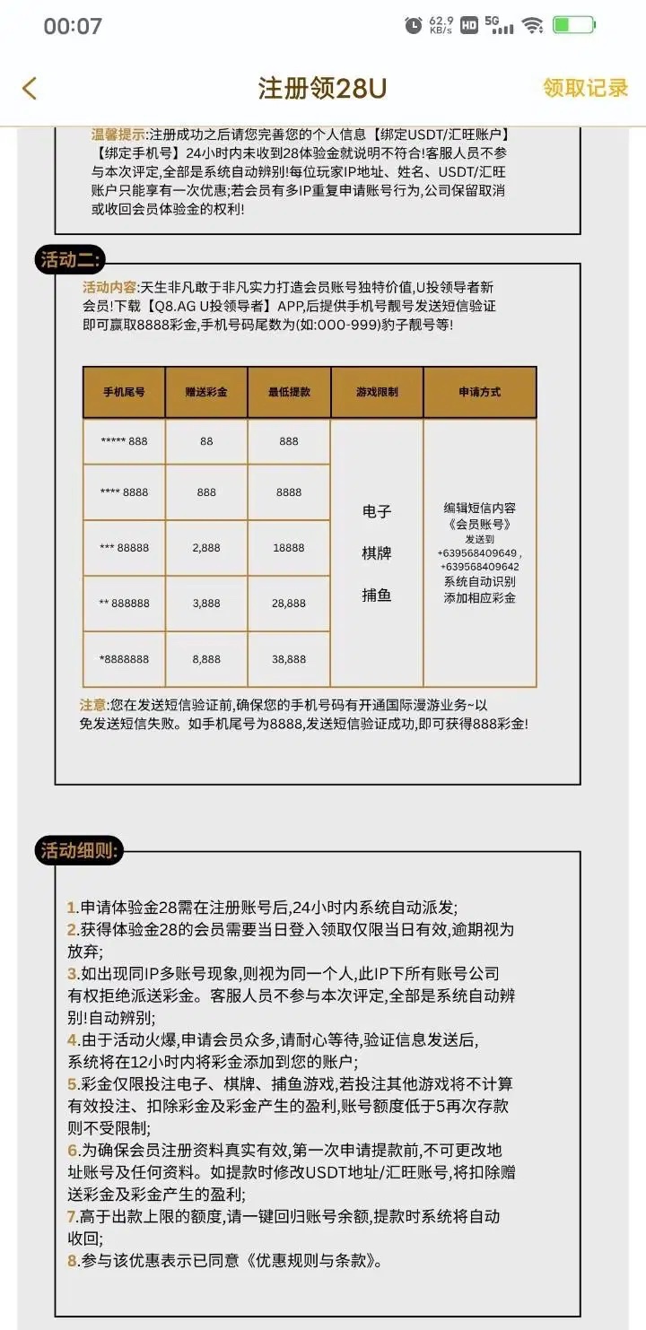 手机尾号三连即可申请88U彩金