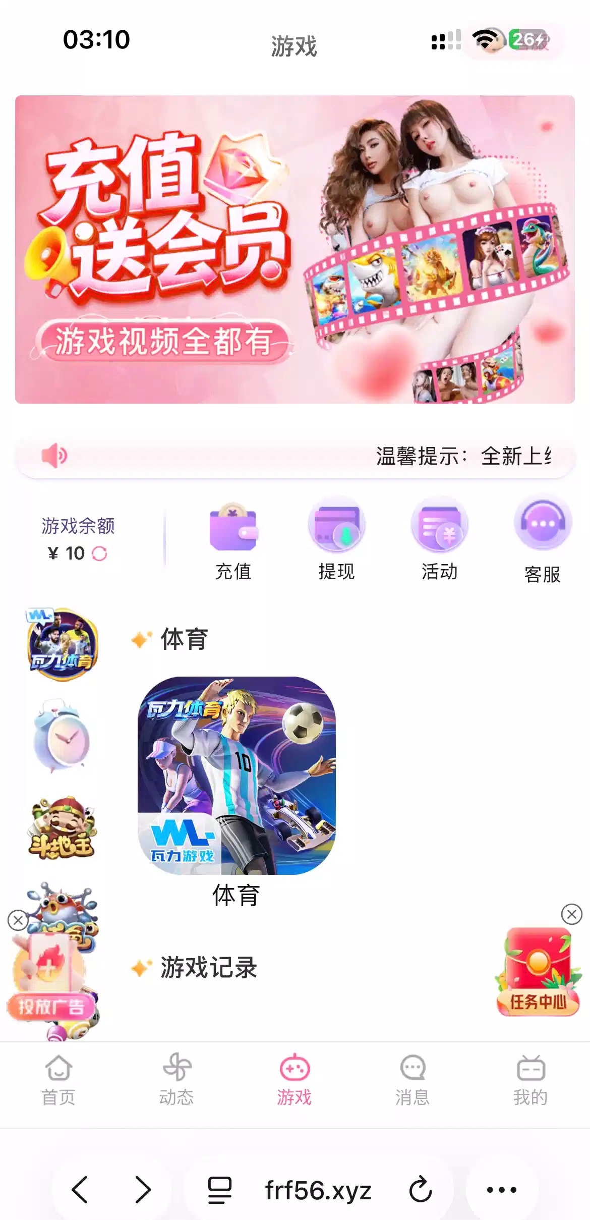刷广告看见的 打开点游戏 然后注册送了10块 里面只有开元和瓦利游戏 我没打不出来不知道能不能出 赌神上