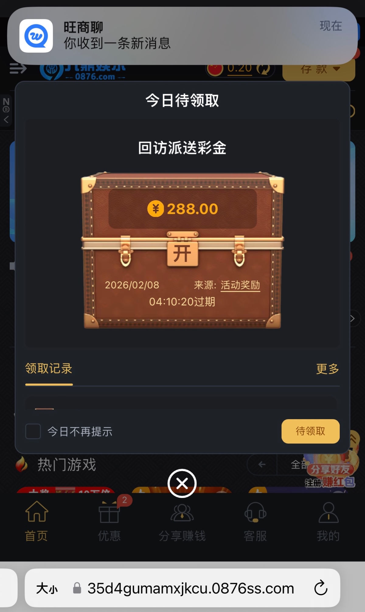 刚刚接到电话送了288 老哥们有账号的登录看看